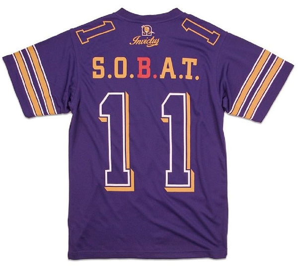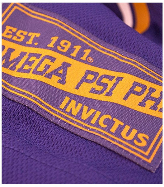 Omega Psi Phi Jersey Tee Shirt [Color] - Purple; [Features] - 100% polyester, Team logo print sleeve, front & back, 100% Officially Licensed Product; [Care] - Hand wash cold, Hang dry, Do not bleach, Cool iron