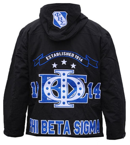 Phi Beta Sigma Windbreaker Black [Color] - Black; [Features] - 100% polyester, Team logo embroidery sleeve, front & back, 100% Officially Licensed Product; [Care] - Hand wash cold with like colors, Hang dry, Flat dry