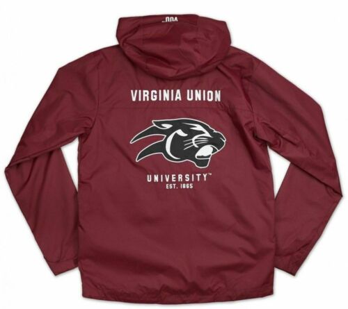 Virginia Union University Windbreaker Panthers [Color] - Maroon; [Features] - 100% polyester, Team logo embroidery sleeve, front & back, 100% Officially Licensed Product; [Care] - Hand wash cold with like colors, Hang dry, Flat dry