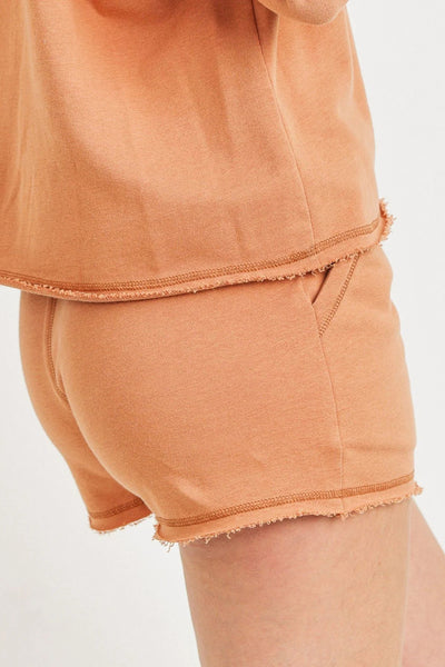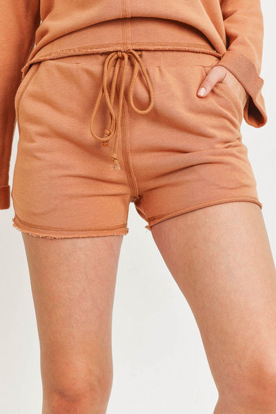 Solid French Terry Waist String With Raw Bottom Hem Shorts